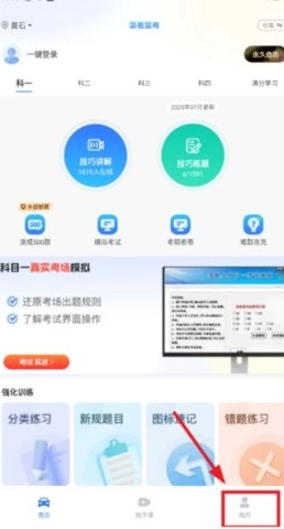 打开简易驾考: 进入首页,点击右下角的“我的”。