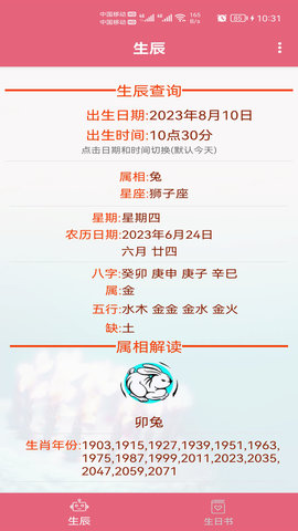 生辰助手是一款十分实用的算命工具,能助力你更深入地认识自身的命运与运势走向。不管是借助生日书、生辰八字进行解析,还是通过星座和生肖展开解读,你都能从中获取有价值的信息,为个人的人生规划提供有益的指引。