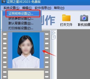 接下来如图2所示,证件照就显示在证照之星的编辑框里了,点击页面左上方“系统设置”下的“证照规格设置”,即可着手设置证件照尺寸。