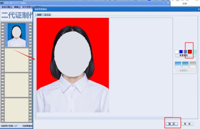 最后如图3所示,点击图中“背景颜色”选项里的红色,再点击“确定”按钮,原本蓝色背景的证件照就会替换成红色背景了。
