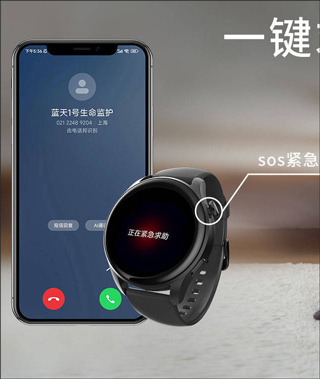 若突发紧急状况,长按手表右侧上方按键即可触发一键求助功能,系统会立即向预设的紧急联系人拨打求助电话,从而有效避免意外情况进一步恶化。