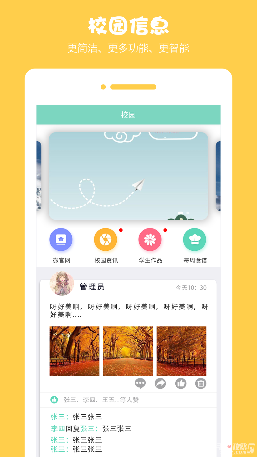 校园通知:通知实时推送,大喇叭的时代已经out了,现在动动手指就OK了。