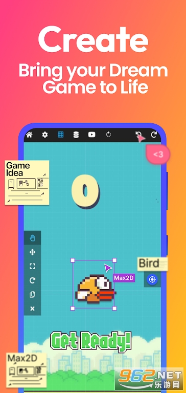 借助 Max2D,让您的手机摇身一变成为游戏开发工作室!您可以亲手打造专属游戏,也能畅玩众多由同好们制作的游戏作品。准备好踏入这个充满激情的移动游戏开发领域了吗?