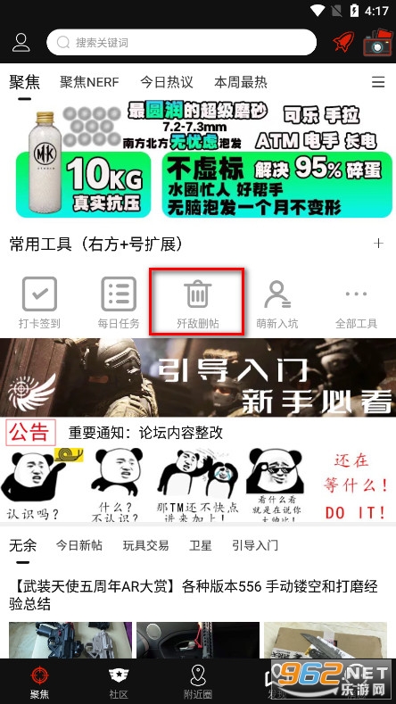 在本网站完成sdgun社区的安装并打开后,能够看到存在一个名为“歼敌删帖”的选项。