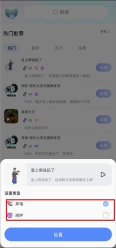 挑选铃声所对应的功能类别,确定无误后点击“设置”按钮就可以了。
