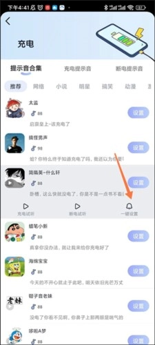 从音效列表里挑选你喜爱的充电提示音,点击该提示音。弹出设置窗口后,选择“一键设置”选项,即可完成充电提示音的设置。