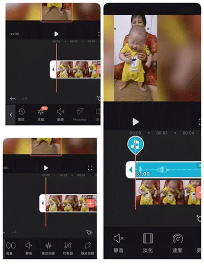 包含静音、添加背景音乐、添加边框、添加滤镜、2倍速播放、4倍速播放、慢镜头播放、视频反转等功能。