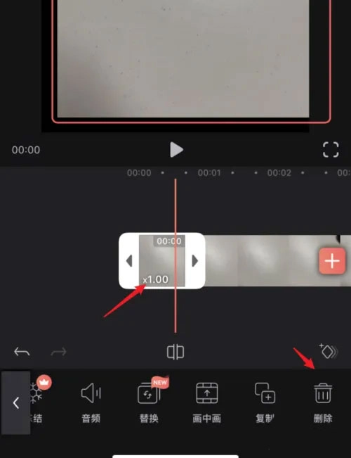 视频分割完成后,选中你要剪辑的那部分内容,接着点击下方的删除图标就可以了。