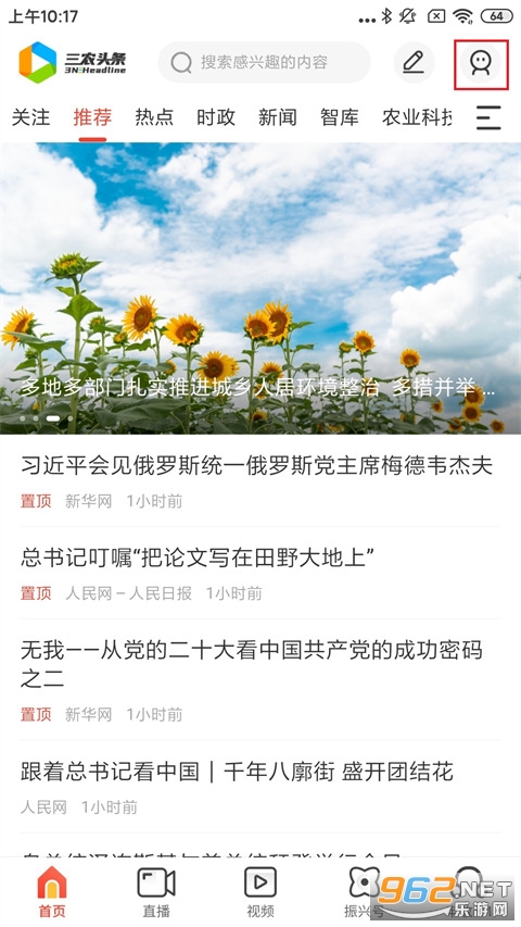首先,打开三农头条新闻客户端,接着点击页面右上方的按钮。