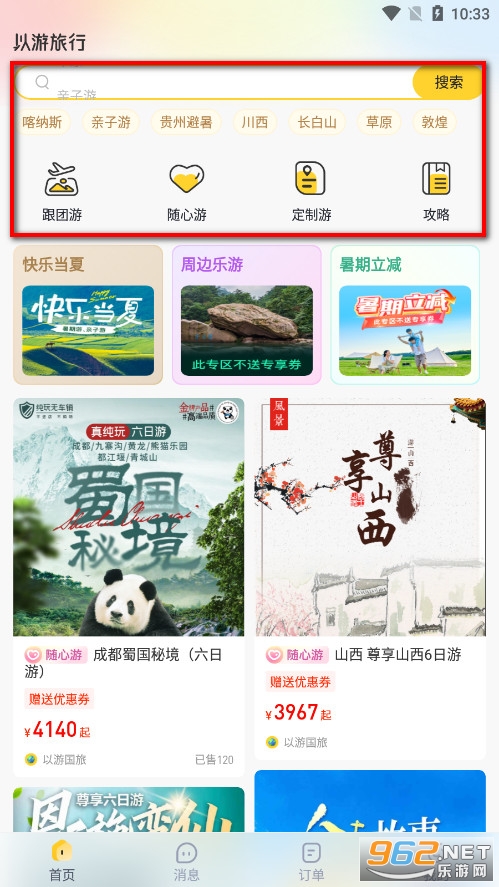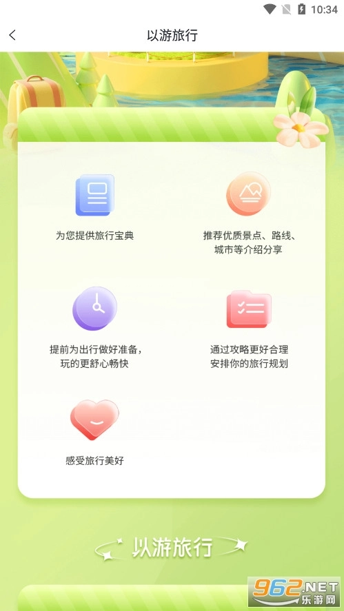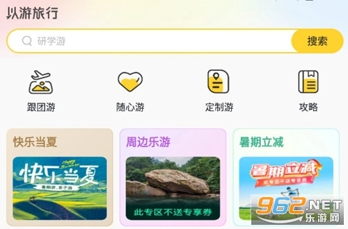 以游能让您随时随地预订酒店、机票和景点门票,还提供覆盖全国的美食娱乐服务、各类用车服务,以及跟团游、周末游、自由行等丰富旅游产品供您选择。此外,您也可以在以游上轻松获取旅游攻略,尽情享受旅行特惠。