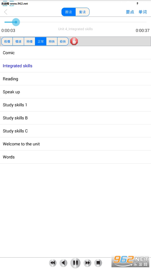 播放功能设计科学,能自由选取课文里的单词、句子等内容进行播放,还可设置多种播放复读模式,并且支持慢播和快播功能。