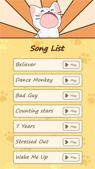 要是你对最初那只灰白色的猫觉得腻了,那就该给它换个模样啦!你可以从各种各样的皮肤里挑选,来改变猫的品种:有萌萌的小猫咪护身符、黑猫、蒙蒂猫、丸子猫、dubstep猫、Chorley猫;或者把你的小猫变成完全不一样的东西,比如蜘蛛猫、皮卡丘猫之类的,把它们都收集起来吧!这些软乎乎的可爱猫咪都归你,给你的萌猫升升级,还能通过DuetCats的音乐挑战来喂养它们,而且这个列表还在不断更新呢!