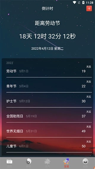 发现页面会呈现即将到来的节日信息,像五一劳动节之类的,便于用户提前知晓。