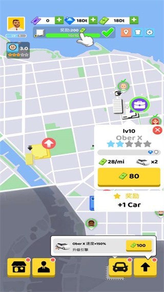 玩家完成订单后能获得金币,这些金币可用于车辆升级。玩家可自由选择提升汽车的速度、舒适度或载客量等属性,以此来增强接单效率并增加收益。而等级更高的汽车会吸引到更多乘客,进而提升接单率。