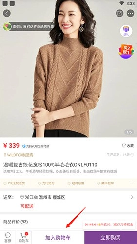 点击底端的“加入购物车”选项即可。