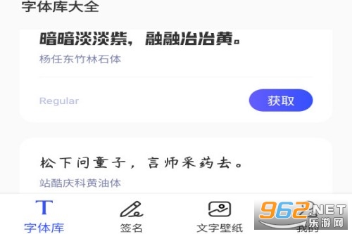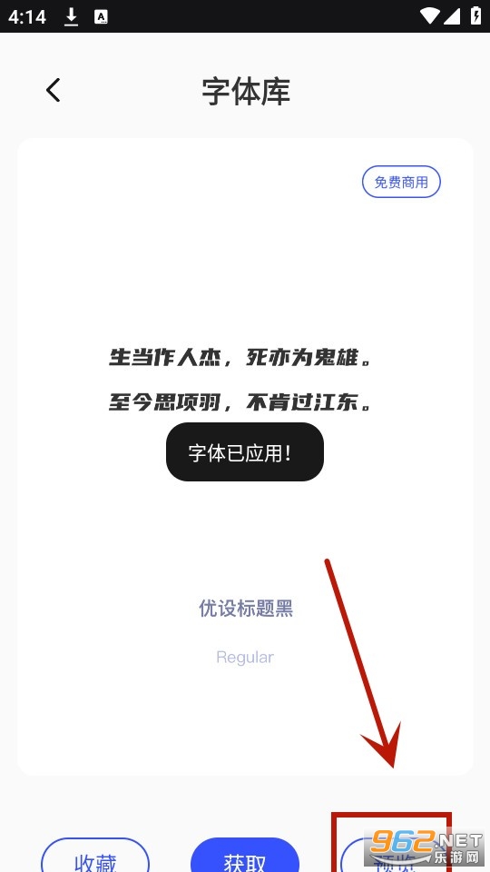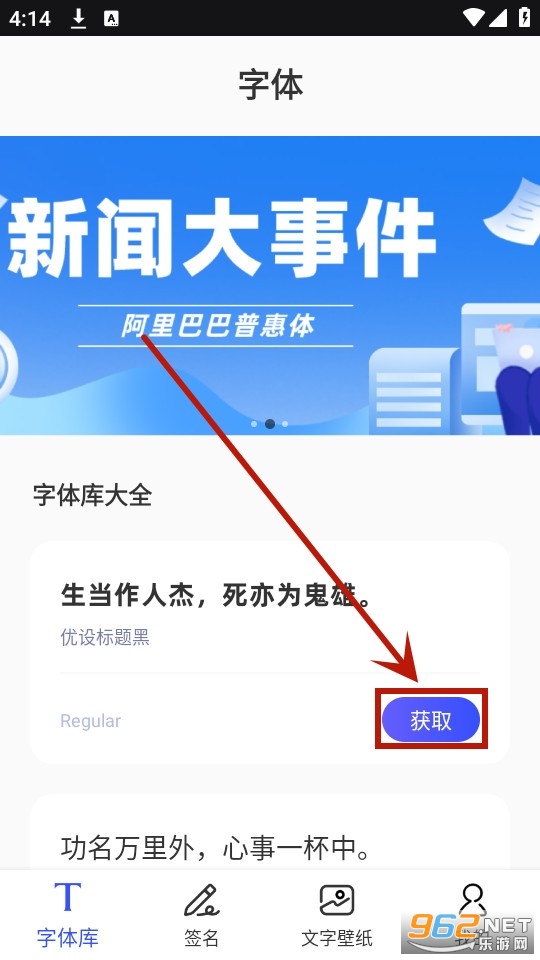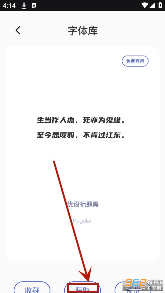 在字体库页面选择你喜欢的字体,点击获取