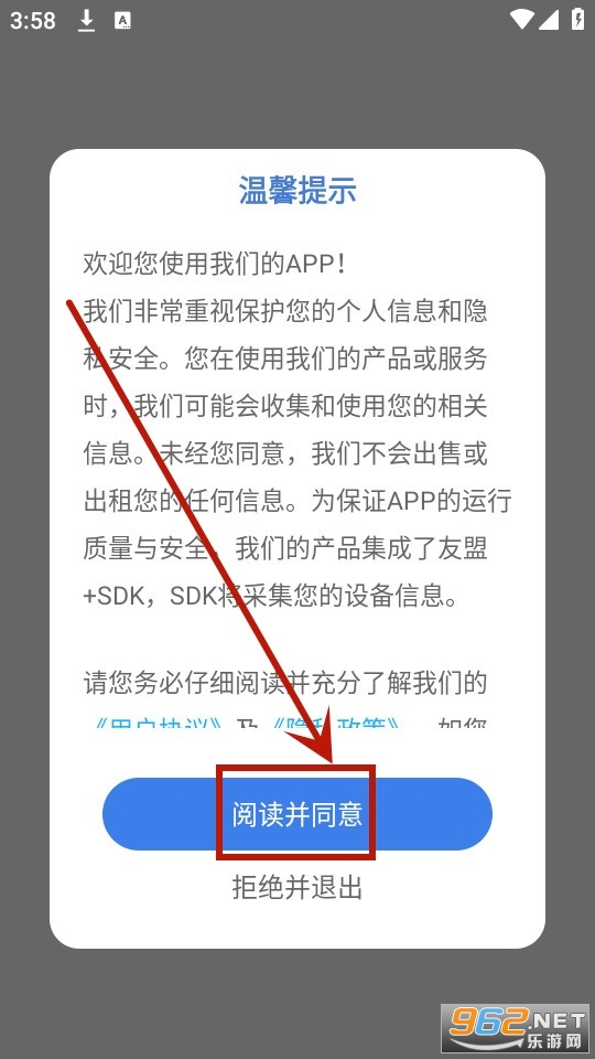 请先安装并打开fonts art应用,随后点击相关选项,仔细阅读并同意相关条款,同时同意其隐私政策。
