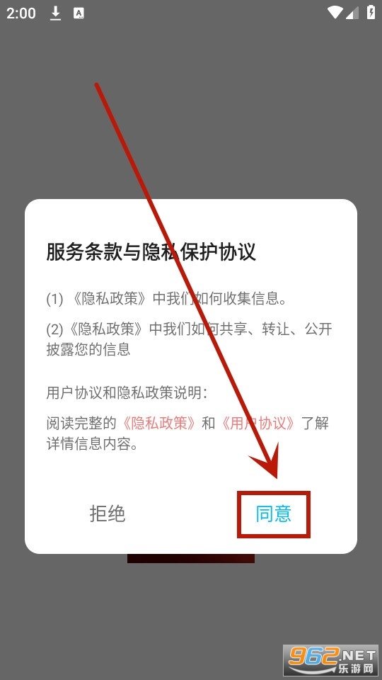 安装并打开二皮剪辑,点击同意,同意隐私政策