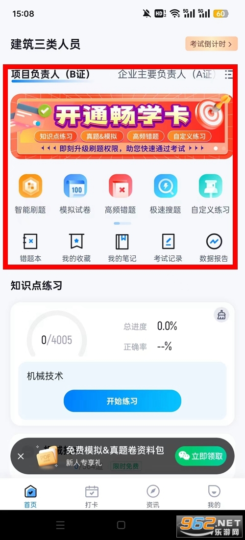 建筑三类人员题库包含考点专项练习,还有全国通用卷与地区卷的模拟训练,以及依据固定考试比重随机抽题的真题考场;成绩单会实时记录考试数据,通过点滴反馈考生近期的学习状态和自我正确率的提升情况,助力考生增强通过考试的信心。