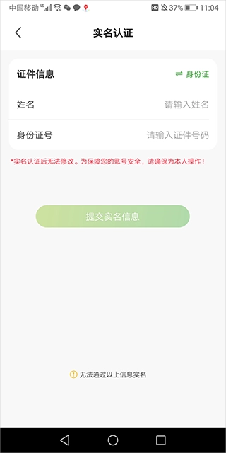 请输入您的身份证号码与姓名,随后完成人脸识别验证,待验证通过后,实名认证便会顺利完成。