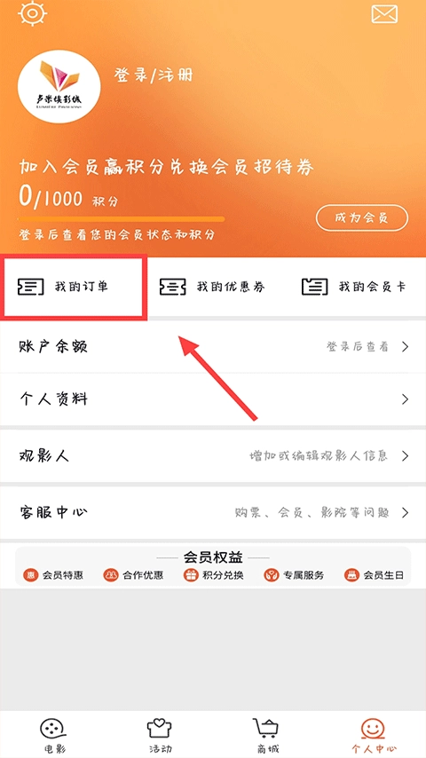 进入“个人中心”,点击“我的订单”;
