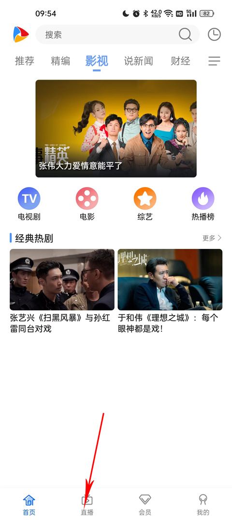 打开软件进入首页后,点击下方的直播选项即可进入直播页面。