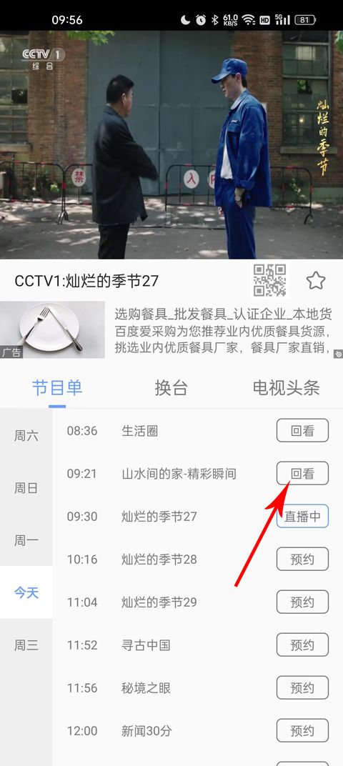 找到你想看的电视剧的播出时间,点击回看就能进行当时的回放。