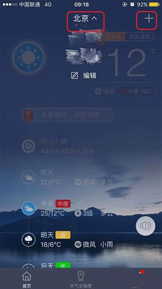 进入主界面后,界面上方标注“北京”处会呈现当地的天气状况。