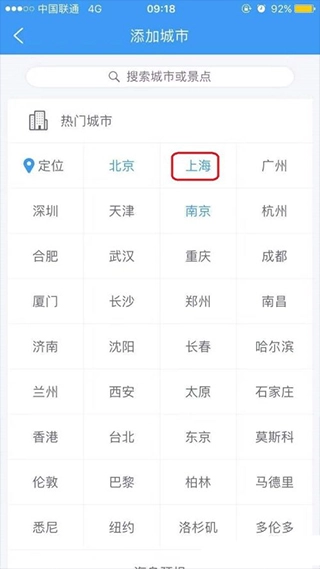 比如小编想了解上海的天气情况,只需在“添加城市”页面选择上海就可以了。