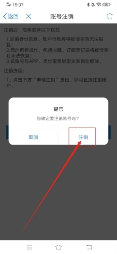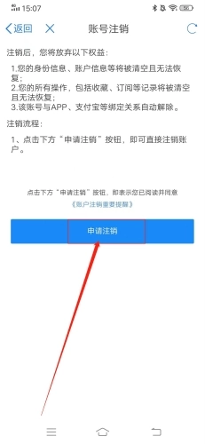 查看账号注销的相关信息,确认信息准确无误后,点击下方的【申请注销】按钮。