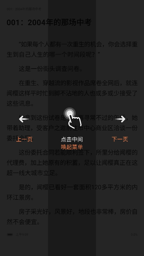 点击阅读自己喜欢的小说,左右滑动就能切换页面。