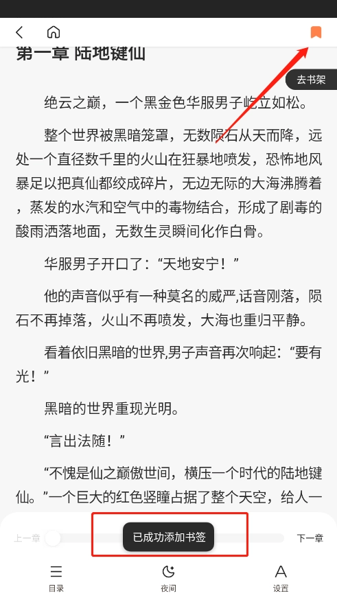 点击“阅读”按钮,接着点击屏幕正中间的位置,把右上角的标志点亮。