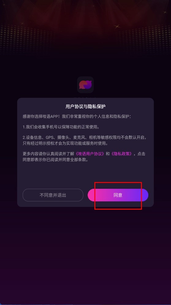 点击【同意】按钮,即表示您确认并同意《用户协议与隐私保护》中的各项条款,随后将进入吱语的下一步操作流程。