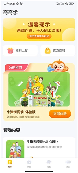 在计划页面里,除了牛津阅读,还包含中文阅读内容,能助力孩子顺利完成从识字到阅读的过渡。