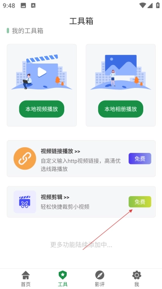 在工具箱页面,找到并点击【视频剪辑】功能按钮,进入剪辑选择界面。