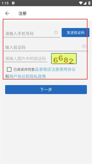 进入【登录品录微店】界面后,要是还没注册账号,可以点击【注册】按钮;之后需要填写【手机号】和【密码】,同时得勾选对应的协议选项。