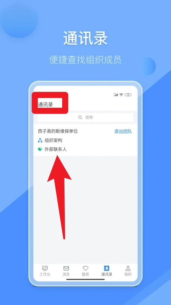 进入通讯录后,能够查找组织架构内的成员信息,其中涵盖同事的联系方式以及所属单位,这样有利于协作沟通和指派任务。