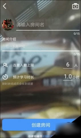 接下来要输入房间名称和简介内容,还要设定连麦的人数上限以及预计的学习时长,之后点击底端的按钮就能创建房间了。