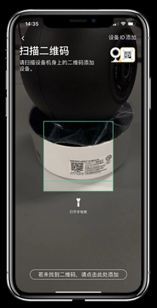 登录后,处于出厂状态的摄像机上电后会出现红绿灯交替闪烁的情况。此时,在主界面右上角点击“设备”旁边的“+”号,然后扫描无线网络摄像机机身上的二维码,具体操作可参考下图。
