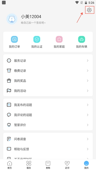 打开云邻社区界面后,点击“我的”页面右上角的“设置”图标选项。