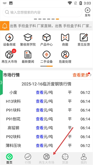 点击页面底部的【再生大市场】按钮,即可进入再生大市场页面。