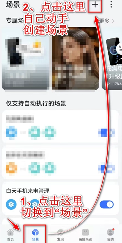 找到“场景”功能的操作入口,手动创建能够自动打开钉钉的智慧场景: