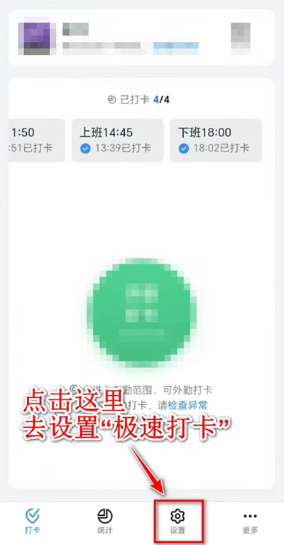 打开“考勤打卡”工作台,点击下方的“设置”按钮