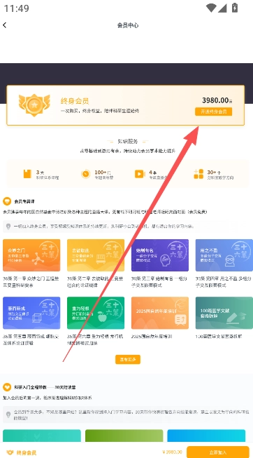 可以看到终生会员的费用已明确标注,用户可选择支付该费用,完成后续下单操作即可。