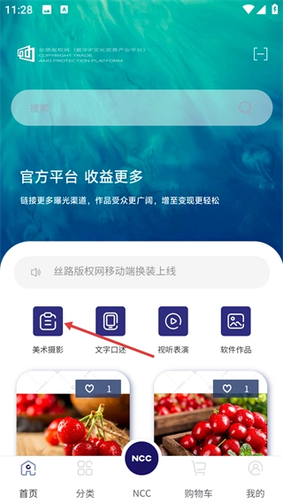 在【丝路版权网】的首页,找到【美术摄影】这个功能入口,点击它就能进入对应的作品分类页面,进而查看相关的版权作品。