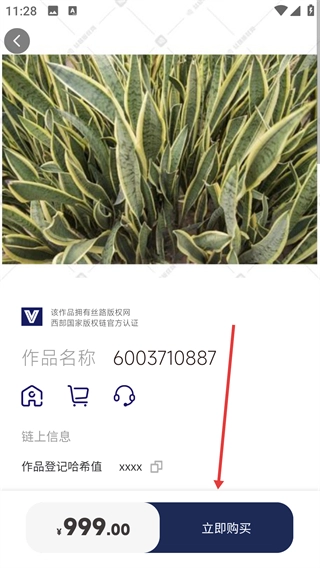 进入作品详情页面后,先确认该作品是否带有【丝路版权网西部国家版权链认证】标识,确认无误后,点击页面上的【立即购买】按钮,即可完成版权交易流程。