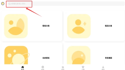 在首页搜索框内,输入壁纸关键词查找。