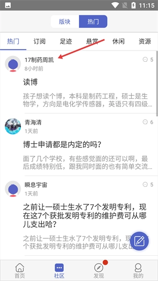 点击发布帖子的用户头像。