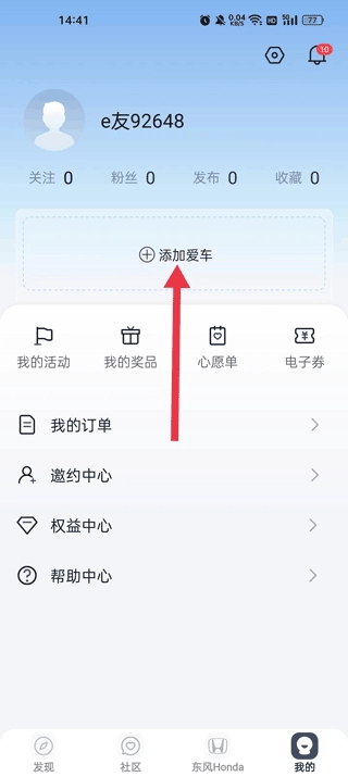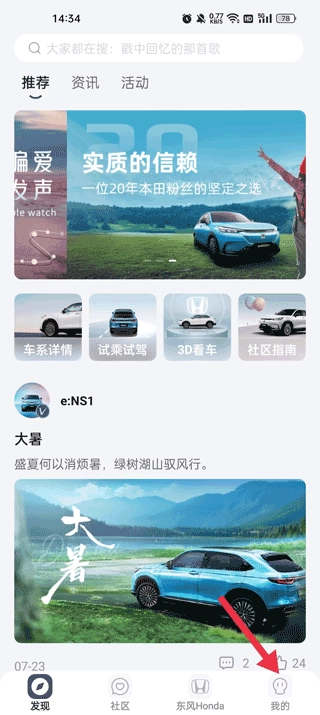点击我的,进入东风本田主页找到我的点击进入;