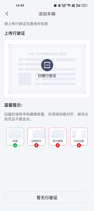 点击添加车辆,接着上传行驶证并完善个人信息,就能完成车辆绑定了。